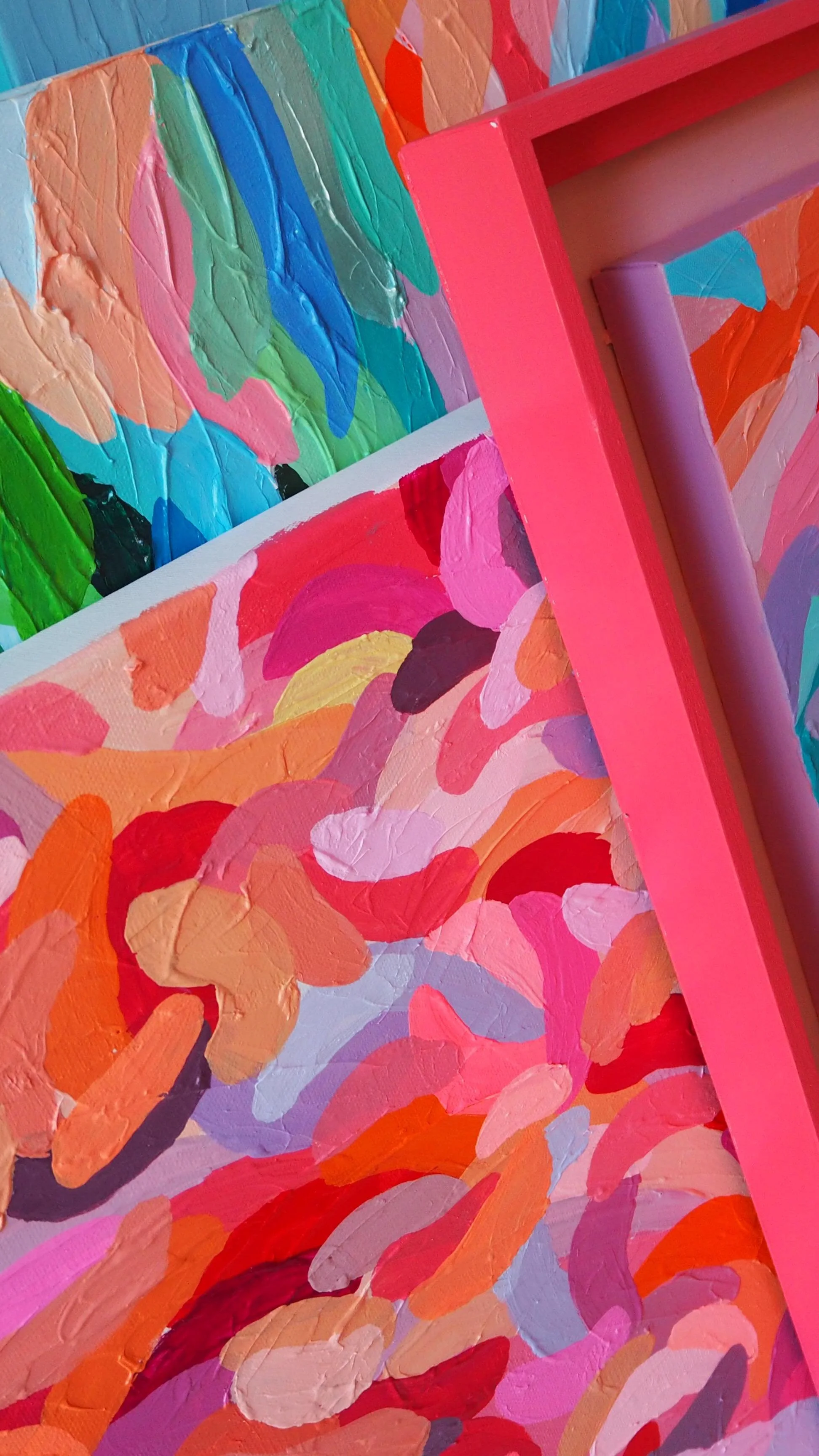 Each original artwork is an intuitive explosion of colour, texture, and feeling, created by hand with curiosity, play, and emotional honesty.