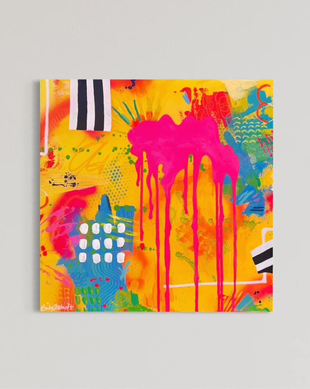 A vibrant, energetic composition filled with neon hues, bold movement and intuitive mark-making. Charge me up captures a surge of emotion and creative impulse, offering an uplifting, joyful boost to any space.